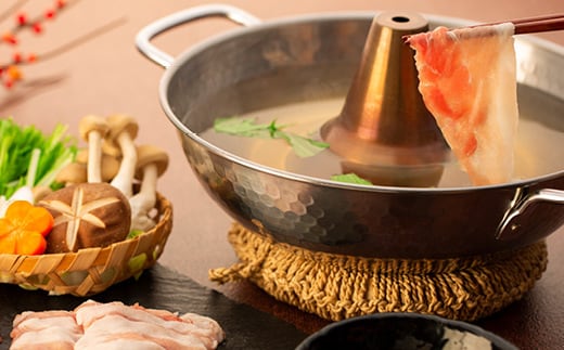 鹿児島大隅の恵まれた自然環境で、ミネラル豊富な地下水を与えて育てられた六白黒豚は、アクが少なく肉の甘味と旨さが口いっぱいに広がる極上の味わい。